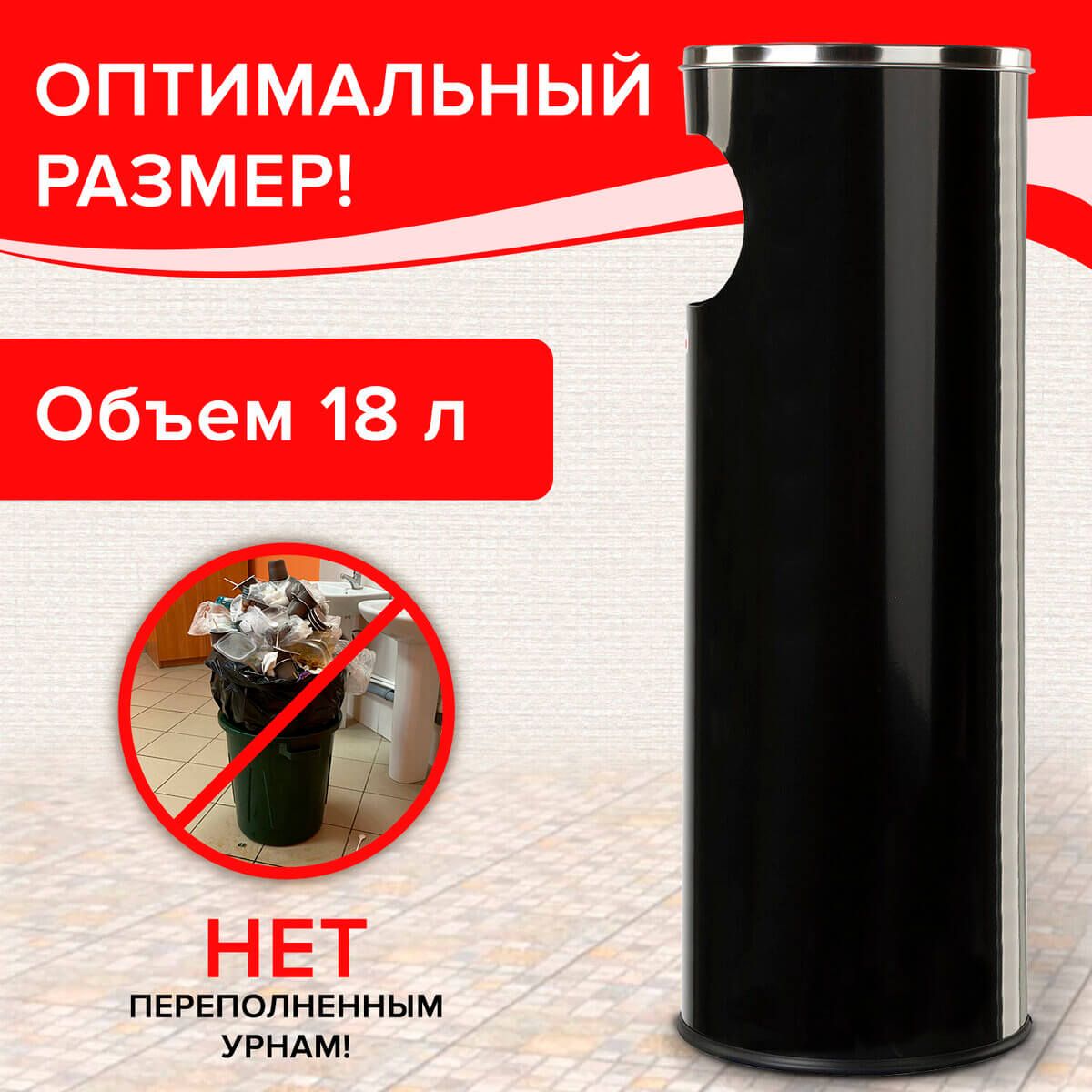 Урна с пепельницей 18 литров, нержавеющая сталь, черная, LAIMA PROFESSIONAL в Балашихе